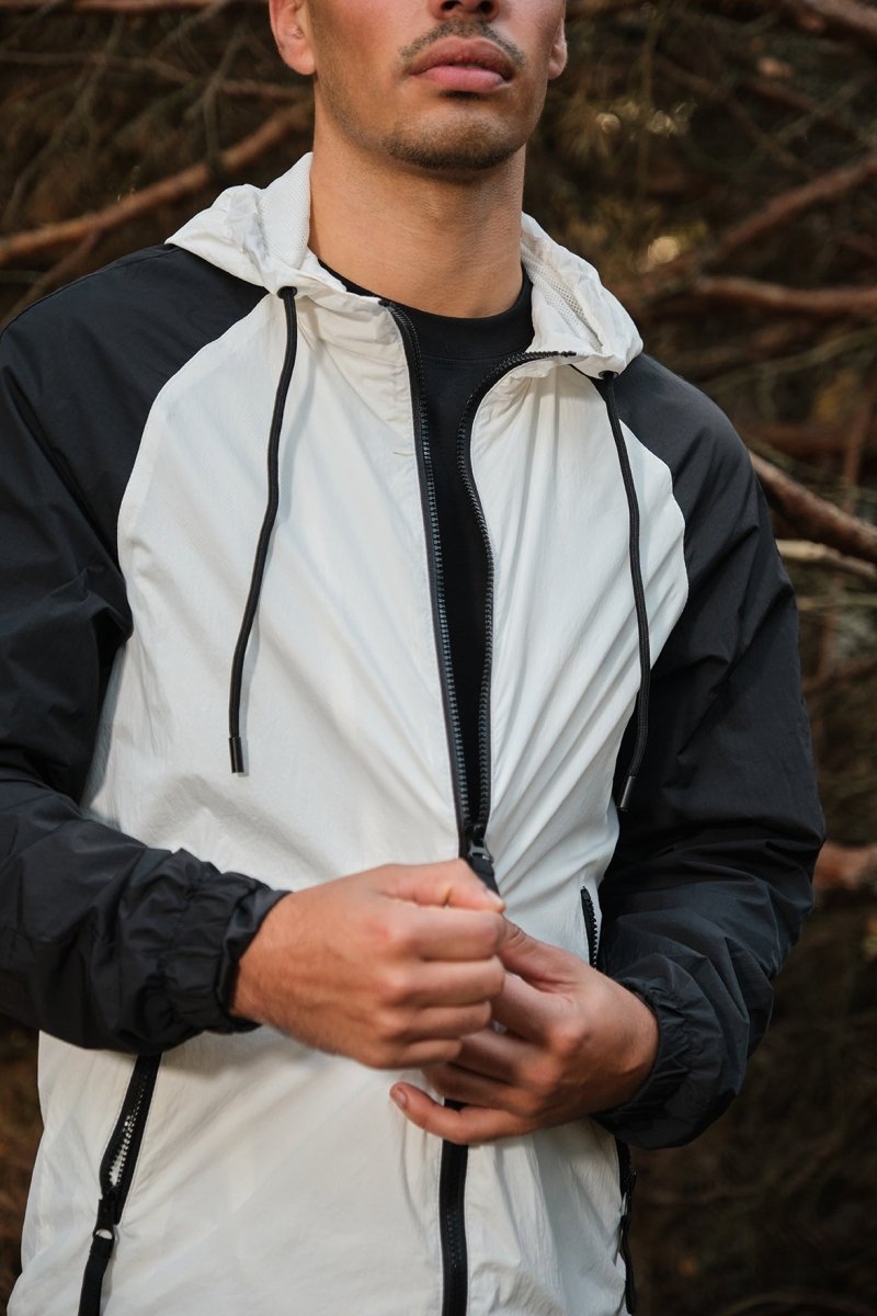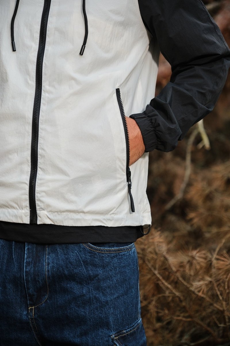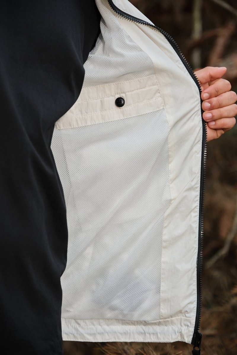 Veste uni légère et compacte de mi-saison. Matière déperlante "Technology Water Repellent". Poches zippées imperméables. poignets avec serrage. Capuche à filet intégrée avec cordon de serrage. Fermeture éclair plastique. Doublure à filet avec une poche intérieur au niveau de la poitrine gauche à fermeture bouton à boucle en tissu.
