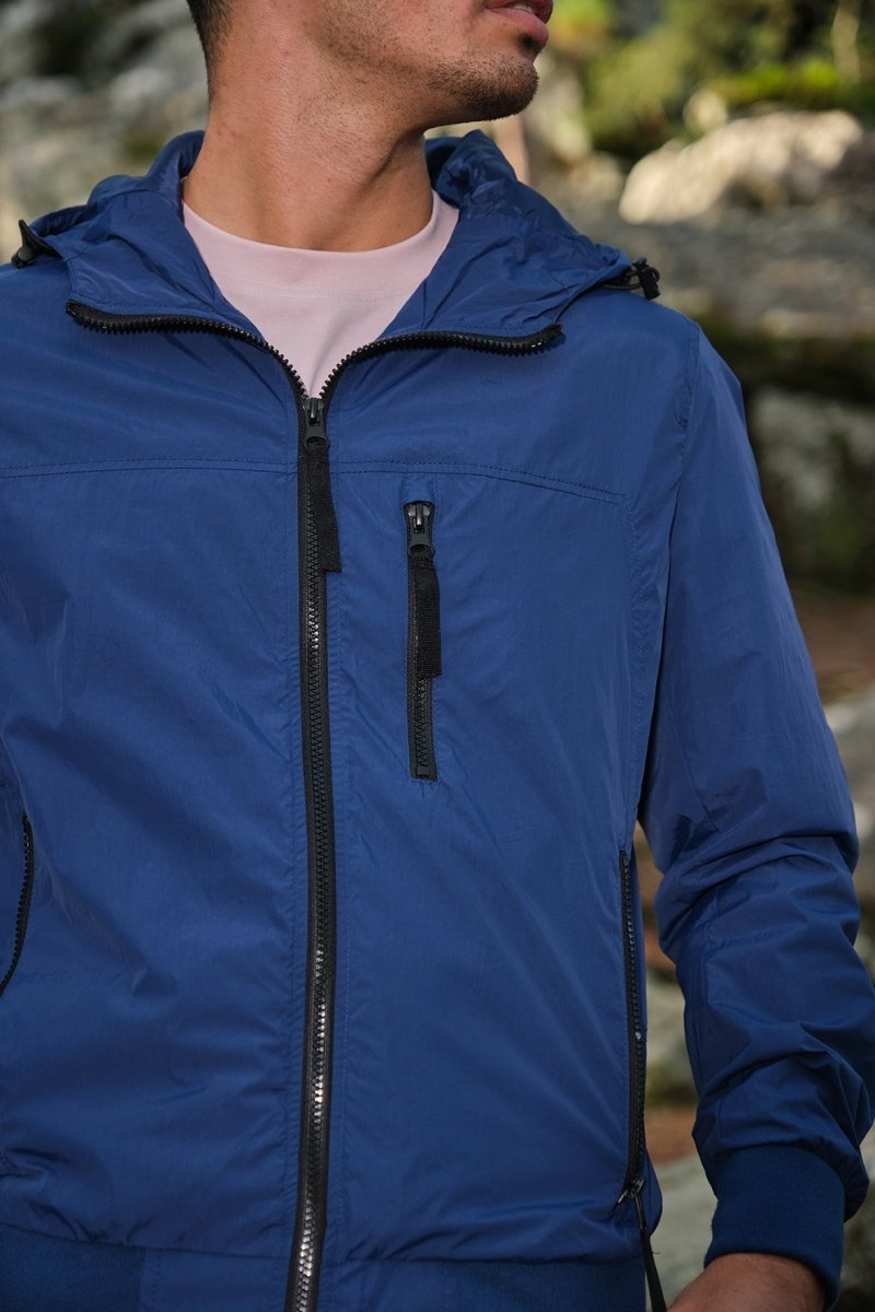 Veste uni légère et compacte de mi-saison. Matière déperlante "Technology Water Repellent". Poches zippées imperméables. Capuche intégrée avec cordon de serrage. Une poche intérieur au niveau de la poitrine gauche.