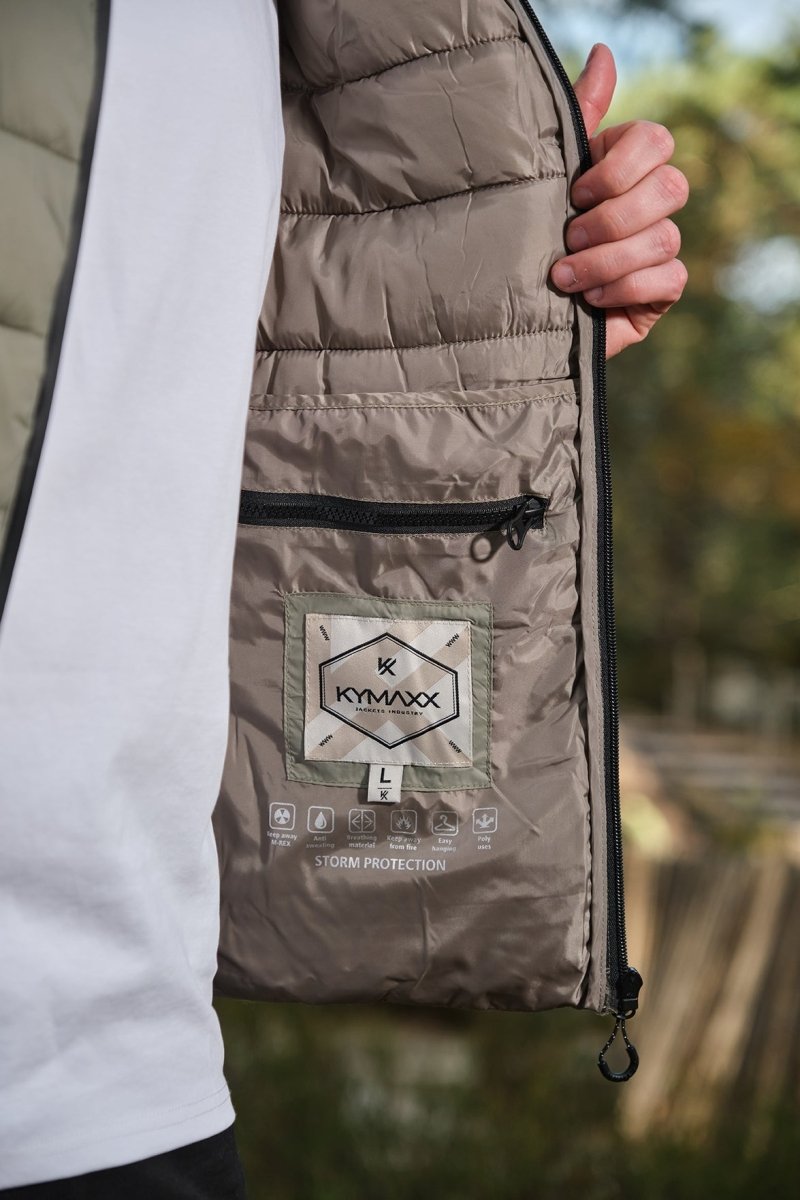 Doudoune sans manches, modèle mi-saison léger et compact, Coupe droite, Col montant couvrant, Piqûres en bandes moyennes, Tissu déperlant "Technology Water Repellent", 2 poches zippées sur les côtés, Doublure assortie avec 3 poches intérieure dont une à fermeture éclair, Fermeture éclair de matière plastique, Logotype KYMAXX sur les tirettes, les ourlets et sur le zip central.