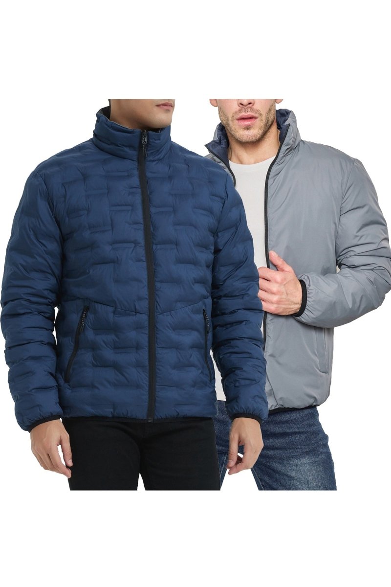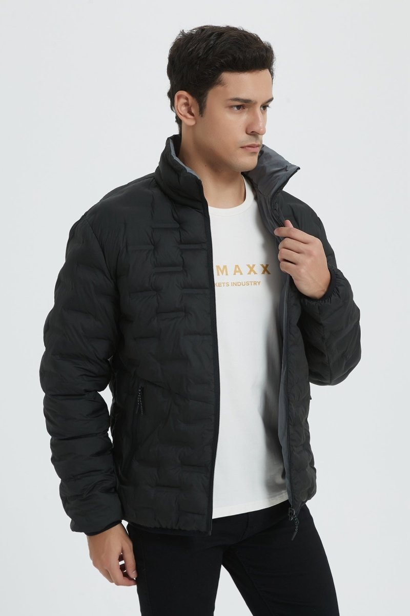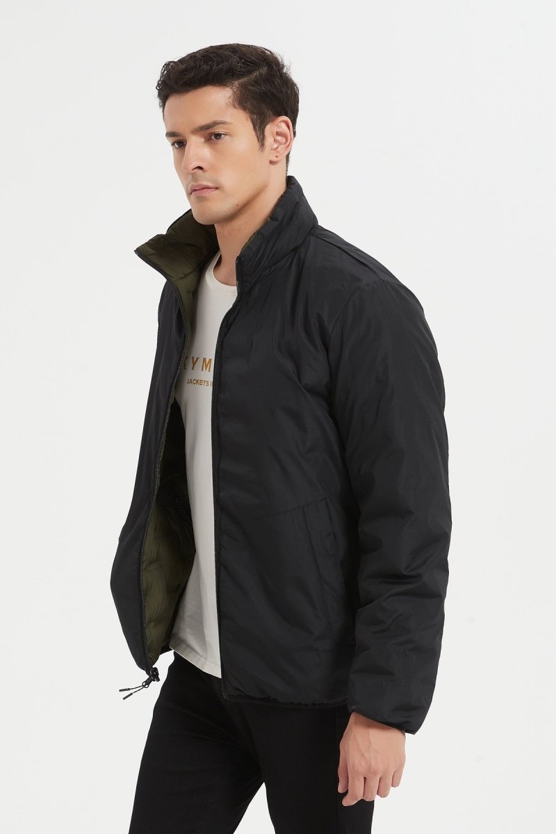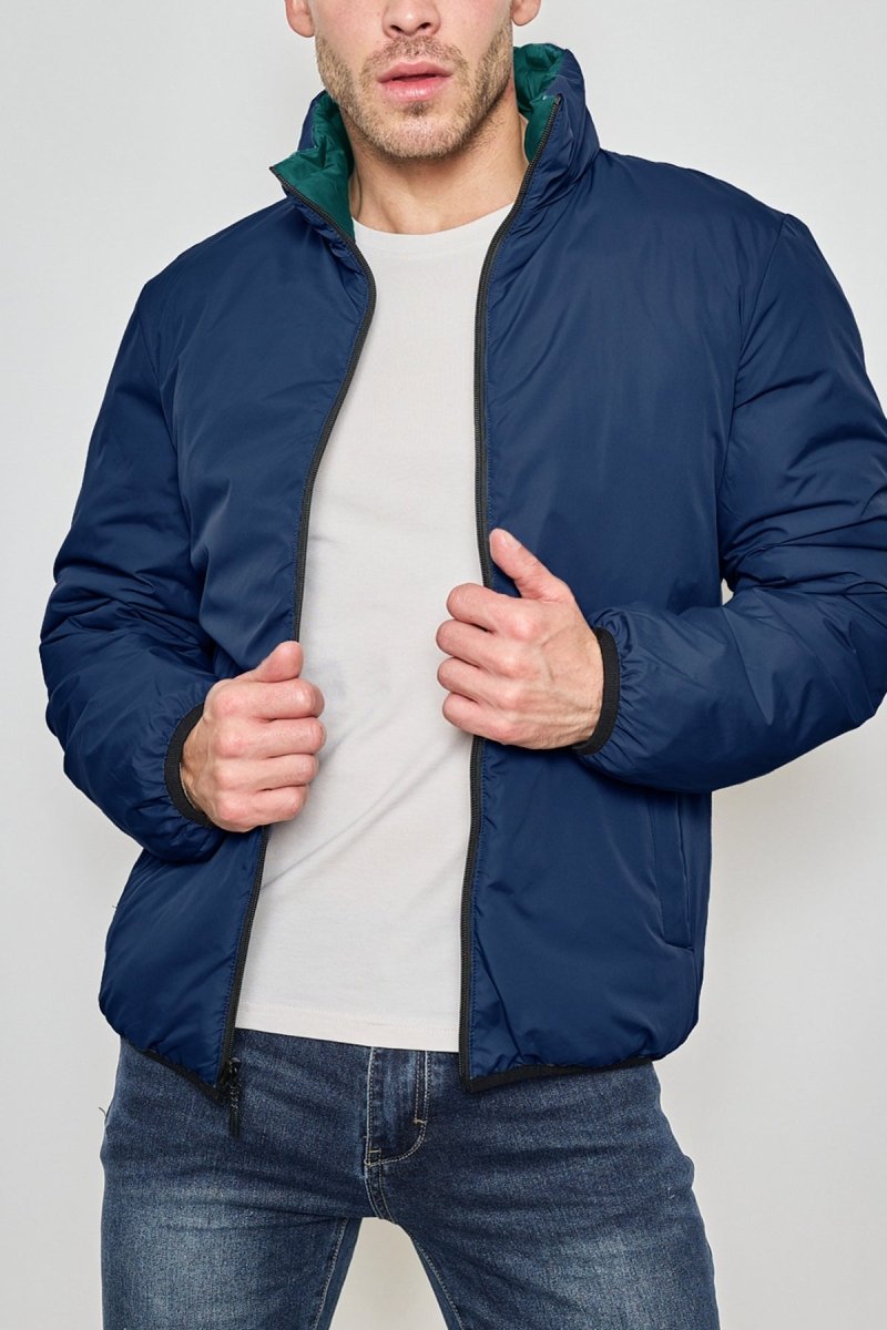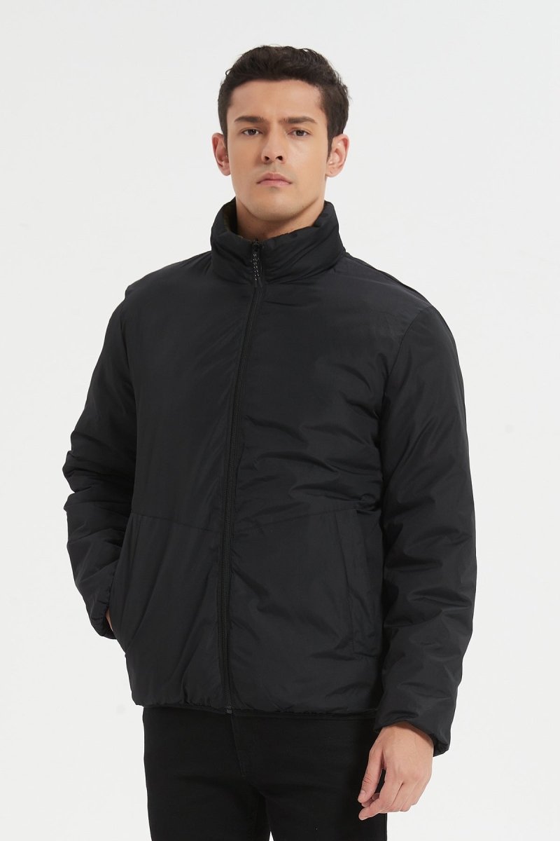 Doudoune réversible. Doublure simple. Col montant. Fermetures à glissière noires spécial double face. 2 poches zippées sur les côtés. Matière déperlante "Technology Water Repellent".