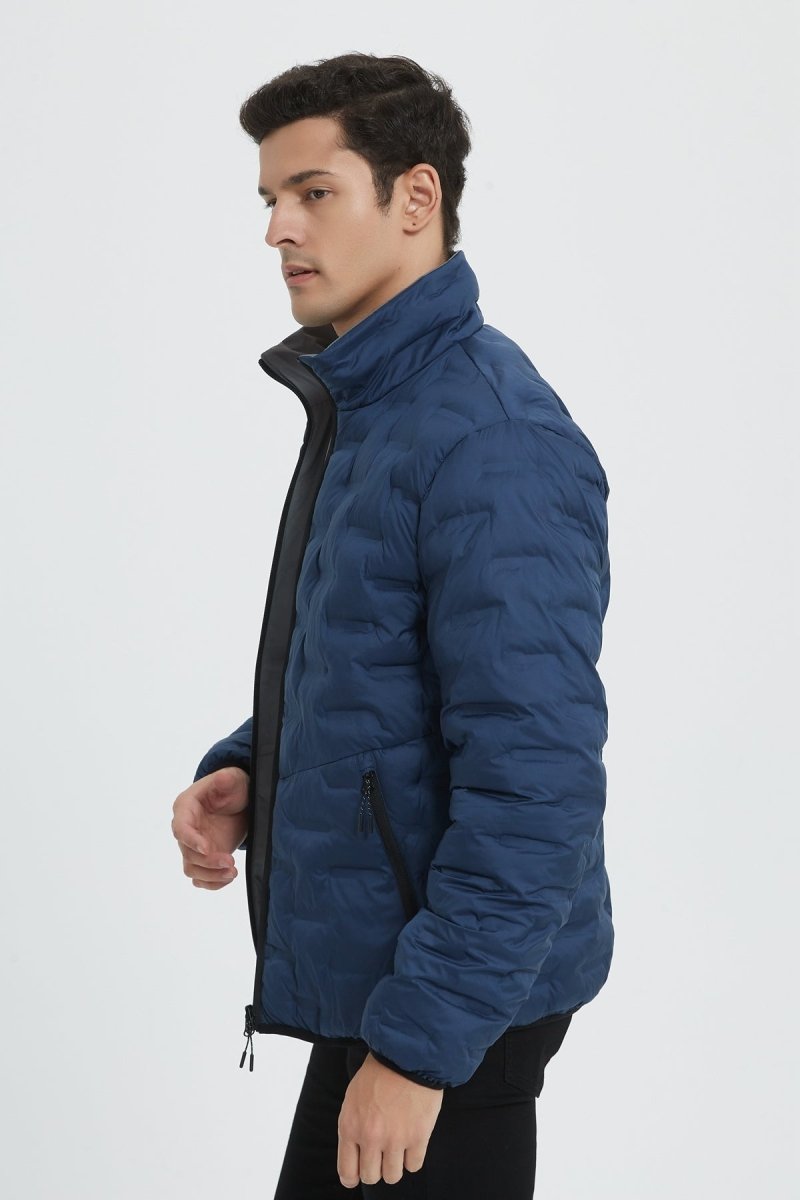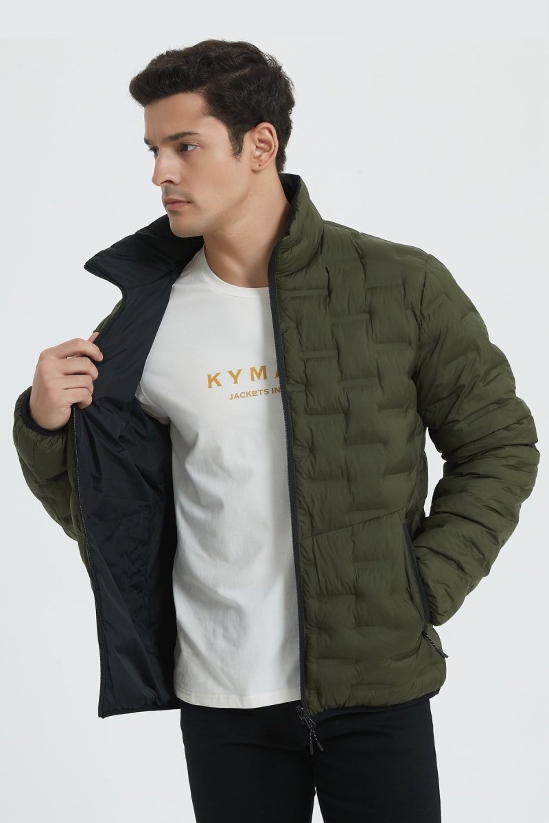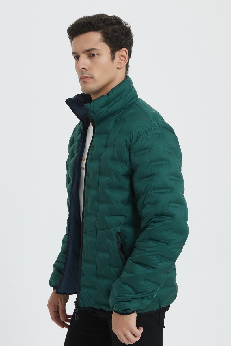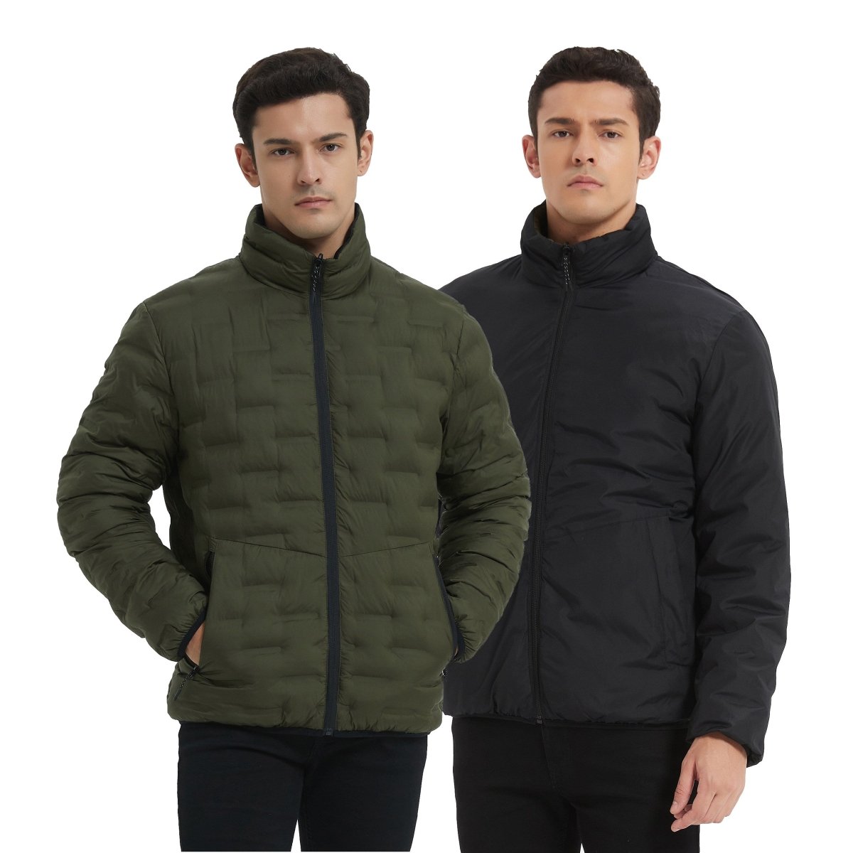 Doudoune réversible. Doublure simple. Col montant. Fermetures à glissière noires spécial double face. 2 poches zippées sur les côtés. Matière déperlante "Technology Water Repellent".