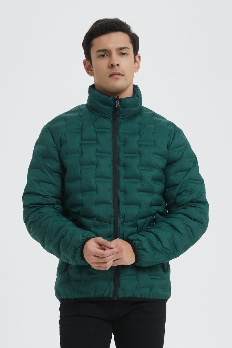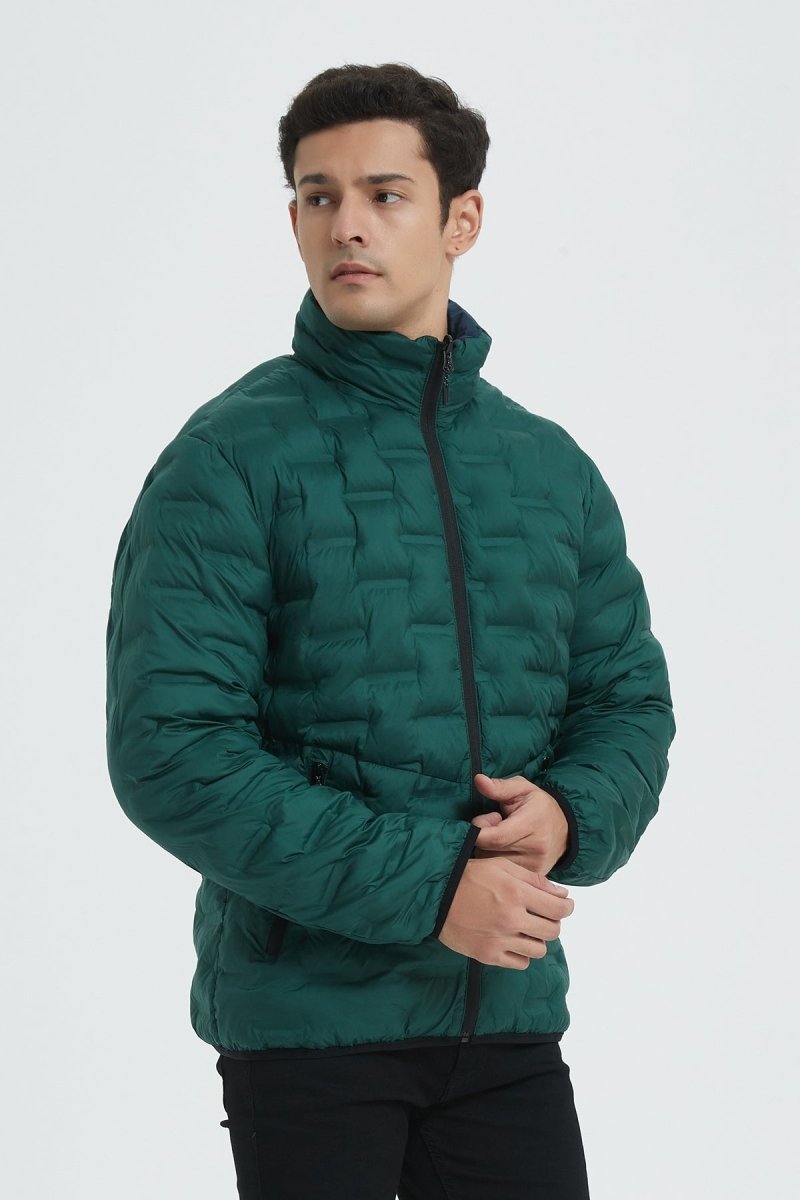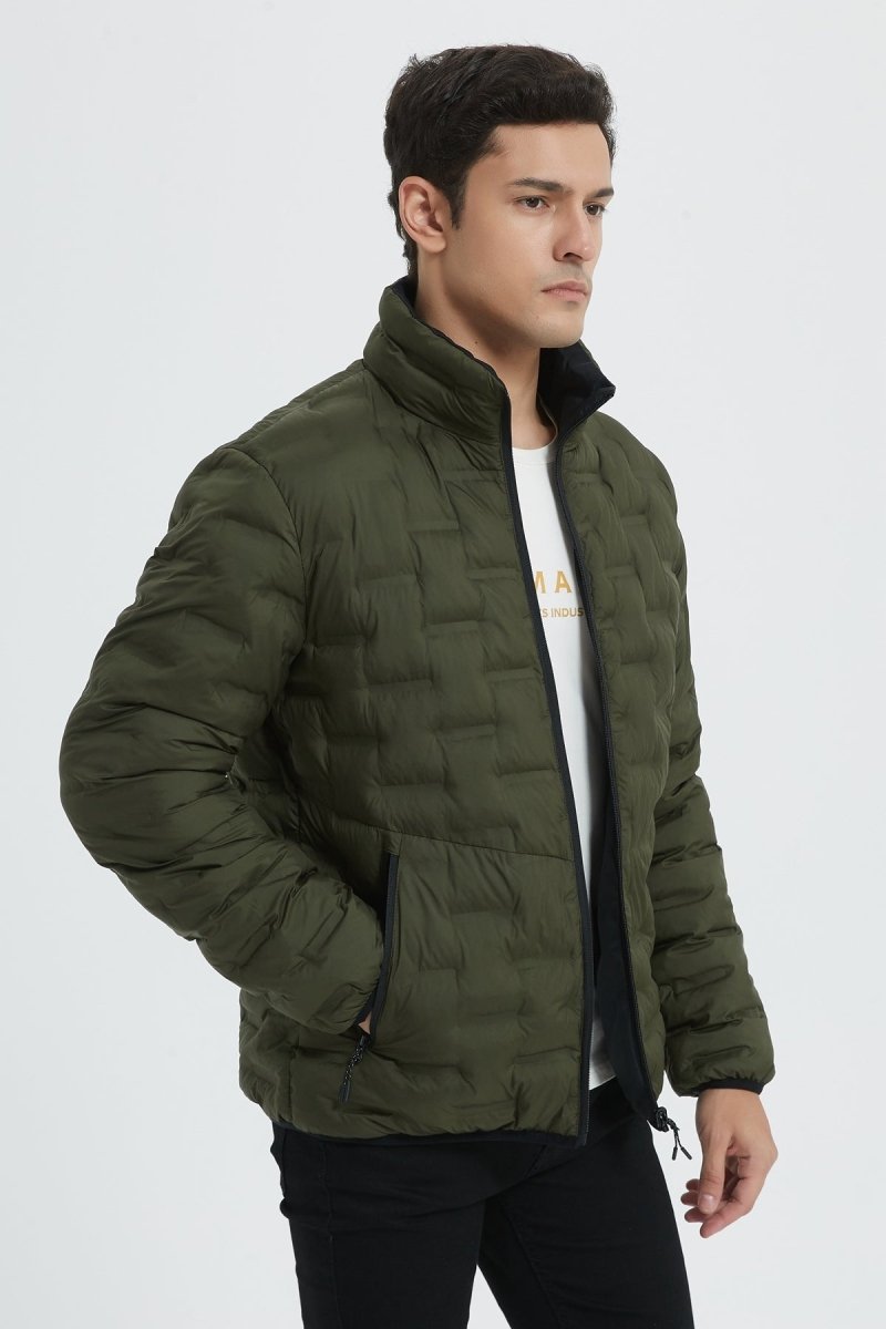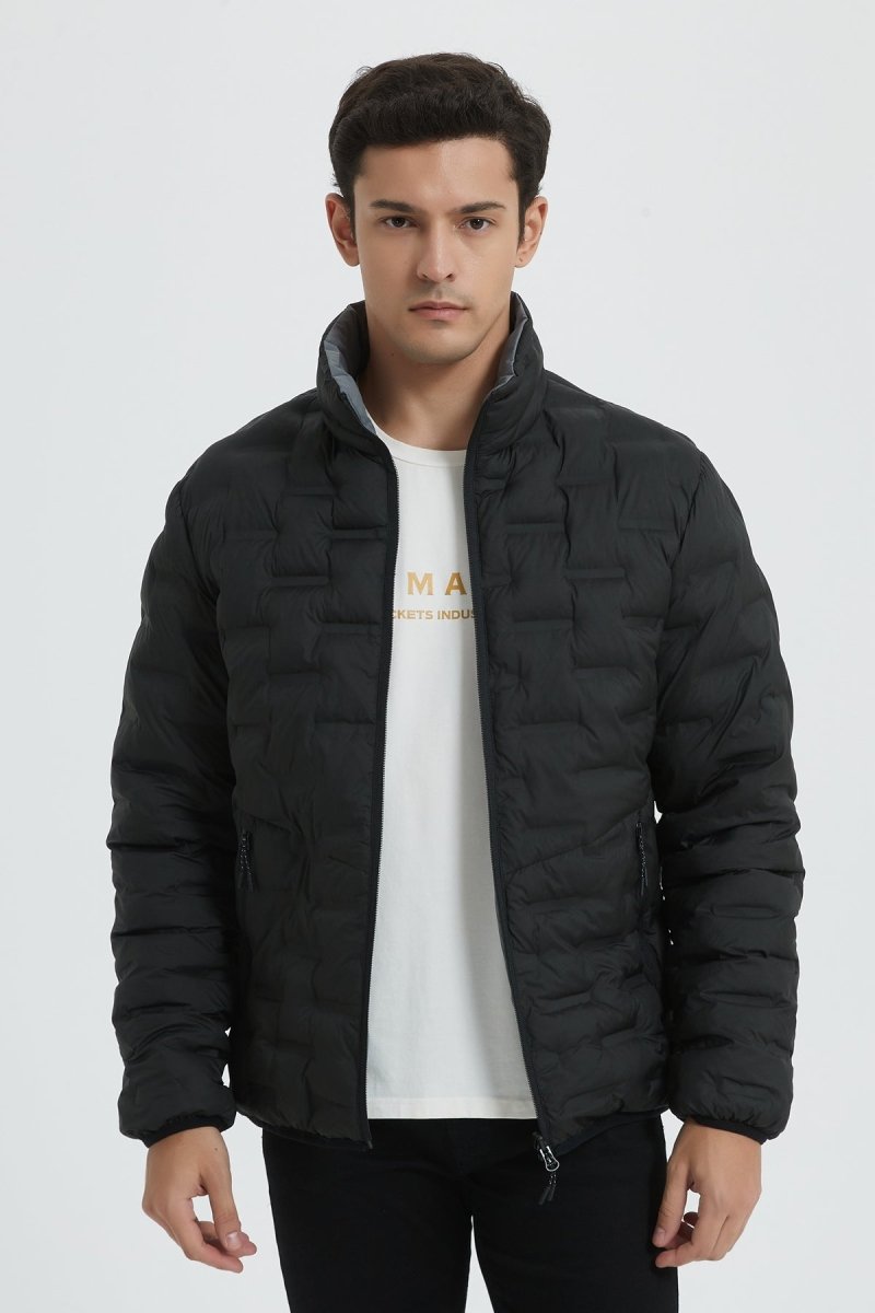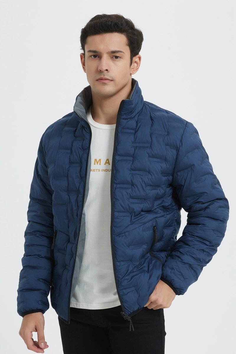 Doudoune réversible. Doublure simple. Col montant. Fermetures à glissière noires spécial double face. 2 poches zippées sur les côtés. Matière déperlante "Technology Water Repellent".